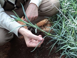 Çiçeklenme başlangıcı veya döneminde, çiçekli daldaki gelişimini tamamlamamış en üst yapraklardan 40-50 adet örnek alınır.