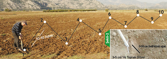 Analiz için toprak numunelerinin alınmasında en önemli nokta, alınan toprak örneğinin tüm araziyi yeterince